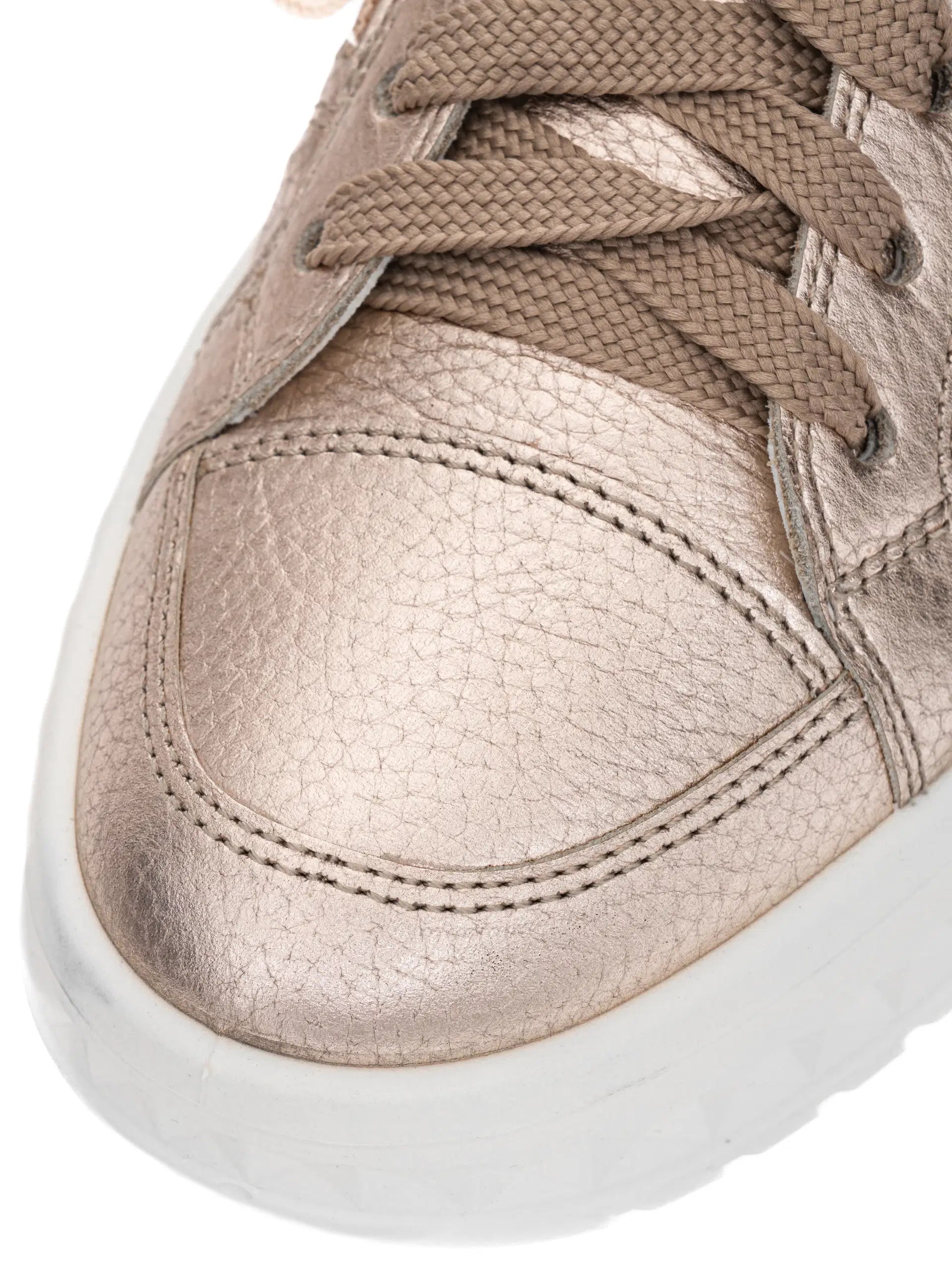 Extremely soft and supple upper leather was used for these trendy ara trainers. The padded shaft edge prevents pressure points. The laces allow the shoe to be adjusted perfectly, while the wide laces add a trendy look. An additional zip on the inside makes it easier to put on and take off. Inside, there is a soft terrycloth lining based on bamboo fibre. This keeps feet pleasantly warm and dry, as it absorbs moisture well and thus ensures a good foot climate. The softly padded, removable footbed is also covered with terrycloth. The shoe also scores points with its innovative HighSoft technology, which stands for a soft step and fatigue-free walking. The shoe has a particularly sporty look thanks to the thick platform sole. This also provides non-slip grip.
