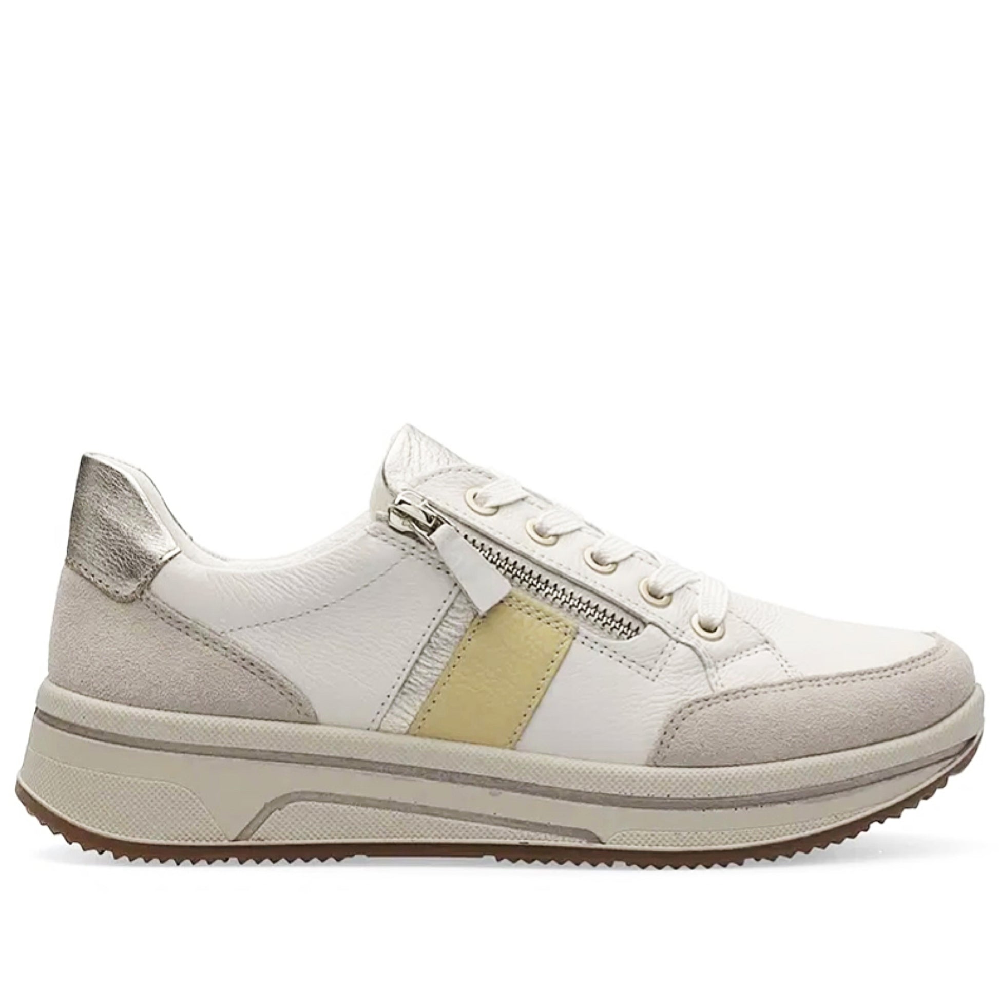Easy going through the day with this ultra-light and sporty sneaker by ara. Thanks to the comfortable H-width, the feet have enough space. Even more comfort is provided by the soft padding all around the shaft. Due to the interplay of lacing and zipper, the shoe can quickly and easily be put on and taken off, and can perfectly be adjusted to individual needs. Inside, the shoe is equipped with soft terry cloth, ensuring a pleasant foot climate and effectively absorbing moisture. The removable insole is also covered with terry cloth and therefore dries quickly. The sneaker, with its fashionable colour and material mix, also features the proven HighSoft technology.
