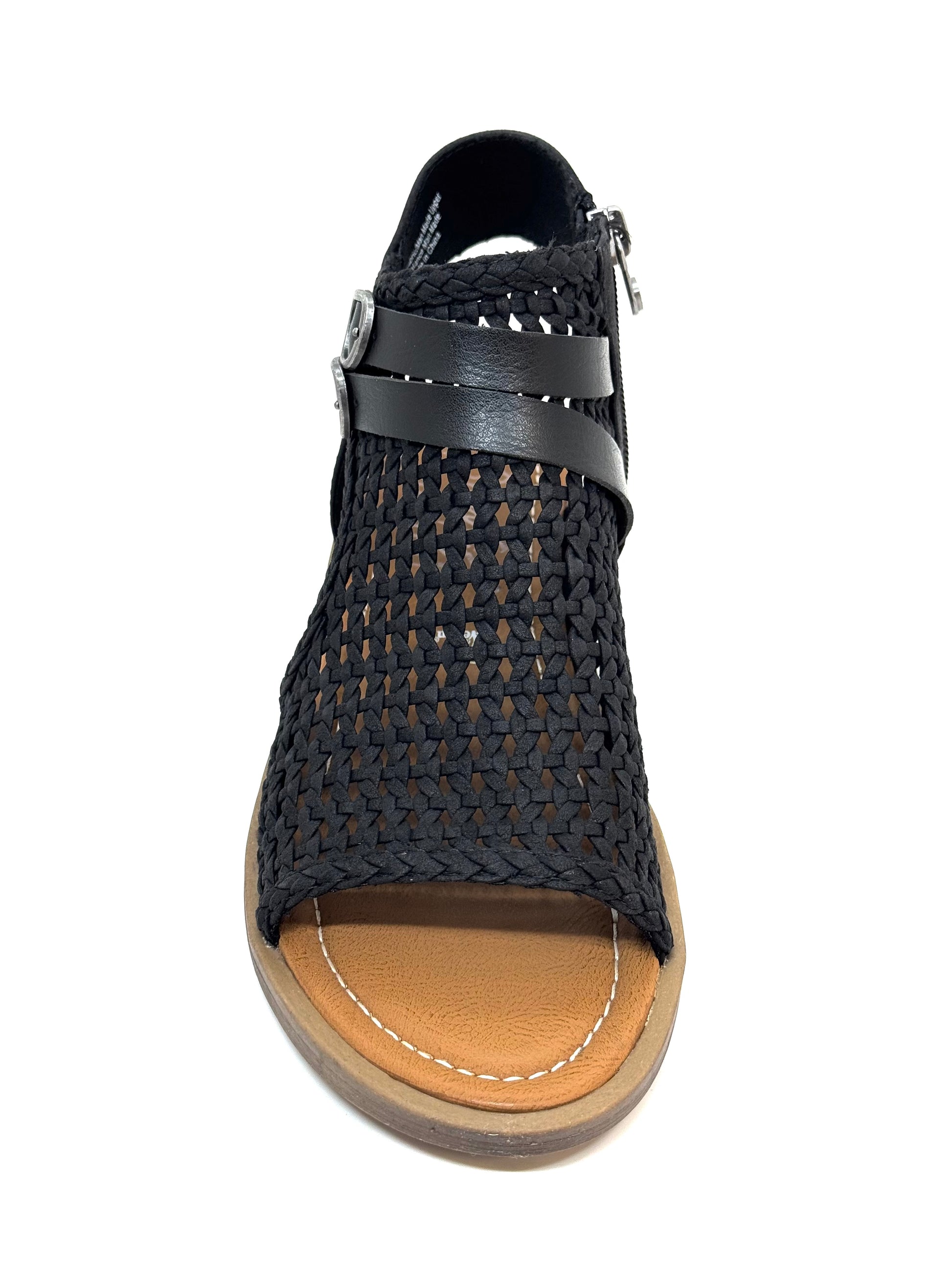 Crafted with a soft textile upper adorned with intricate cutout woven detailing, these sandals exude a chic and summery vibe. The two faux leather straps featuring buckle details not only add a touch of sophistication but also provide a secure fit.