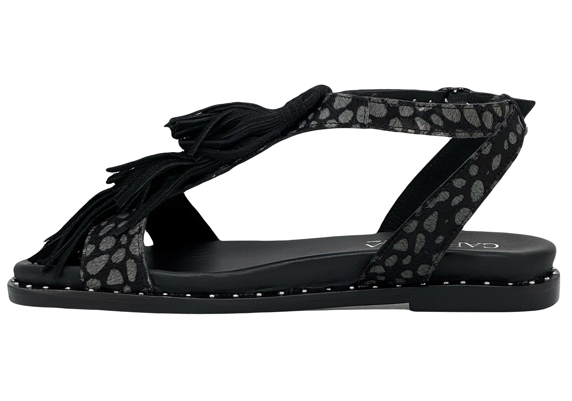 Women's sandals, Carmela brand. Made in high quality leather. Animal print in trendy print. With decorative elements. Comfortable sole and non-slip sole.