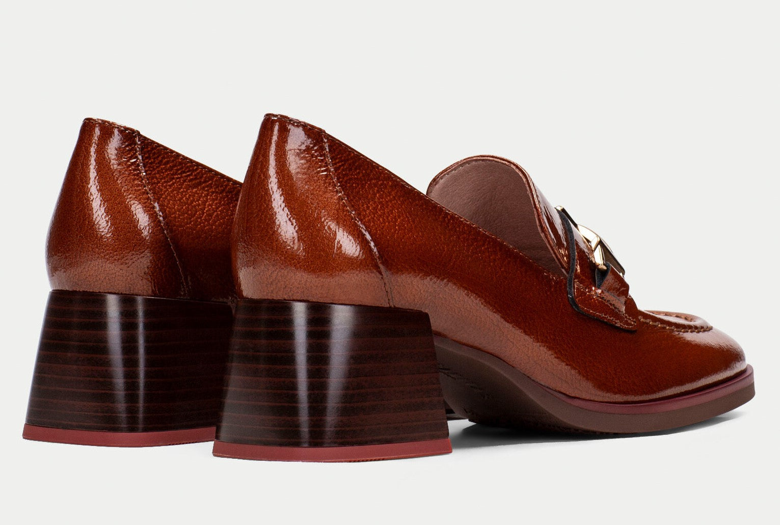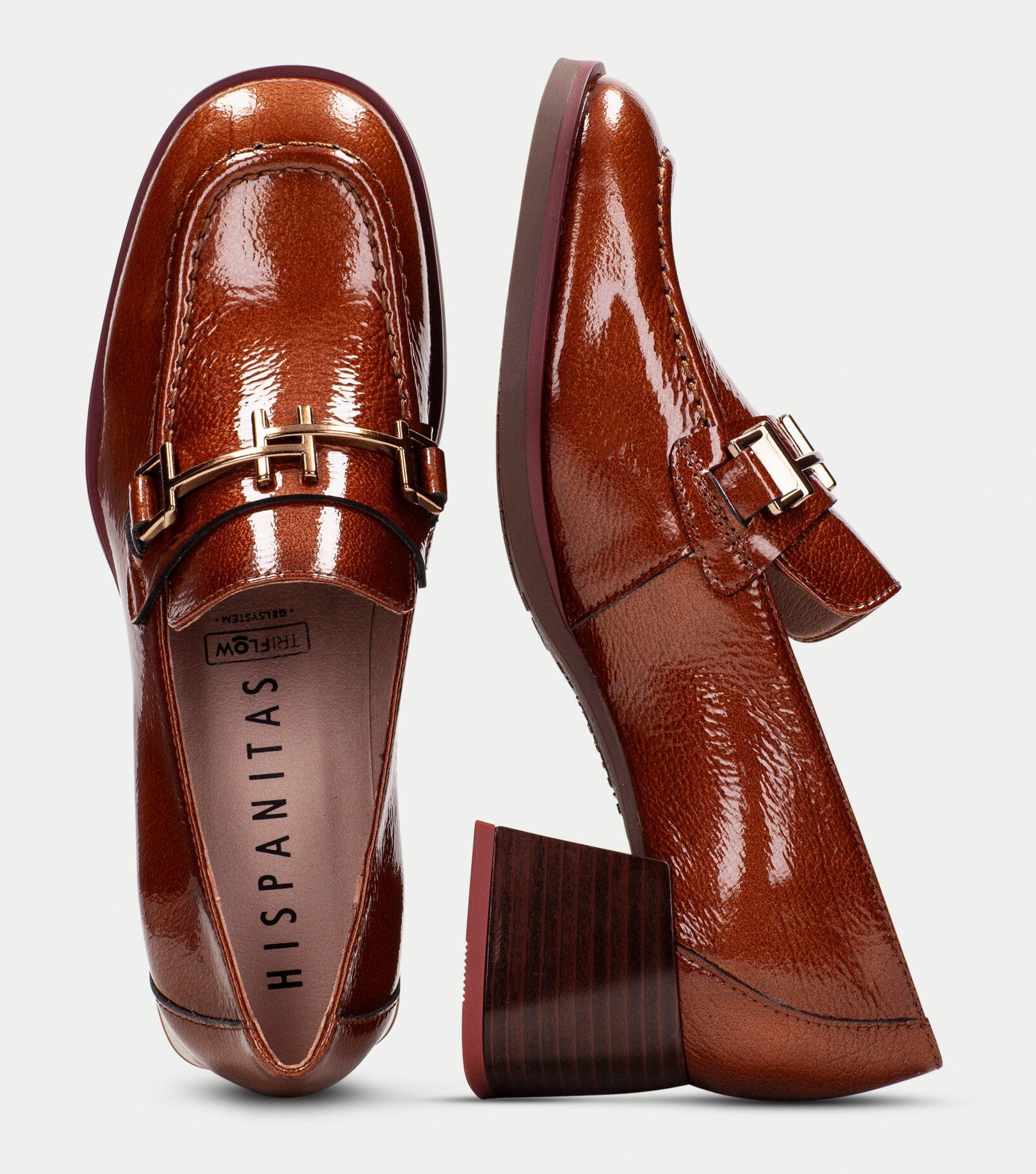 Hispanitas Milan Ladies Block Heel Crinkle Patent Loafer