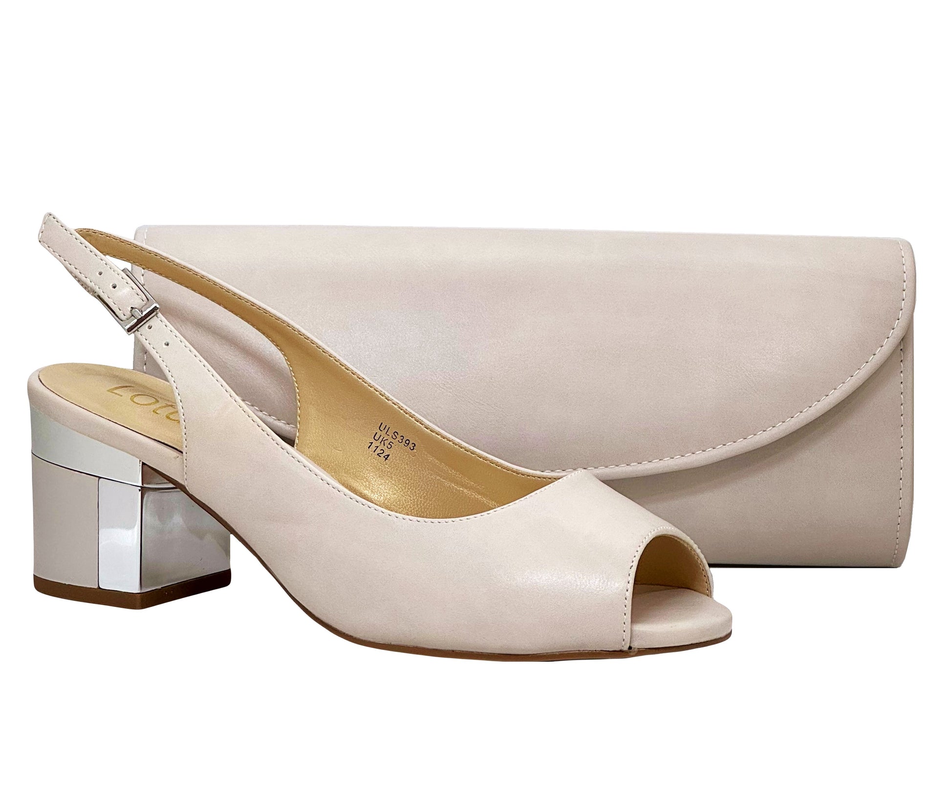Set to slide seamlessly into your hard-working wardrobe is the Lotus Evelyn slingback shoe. This understated nude peep-toe shoe is crafted from faux leather, it encompasses an adjustable slingback and a contemporary 6.5cm block heel that is enhanced by a decorative metal plate and trim.