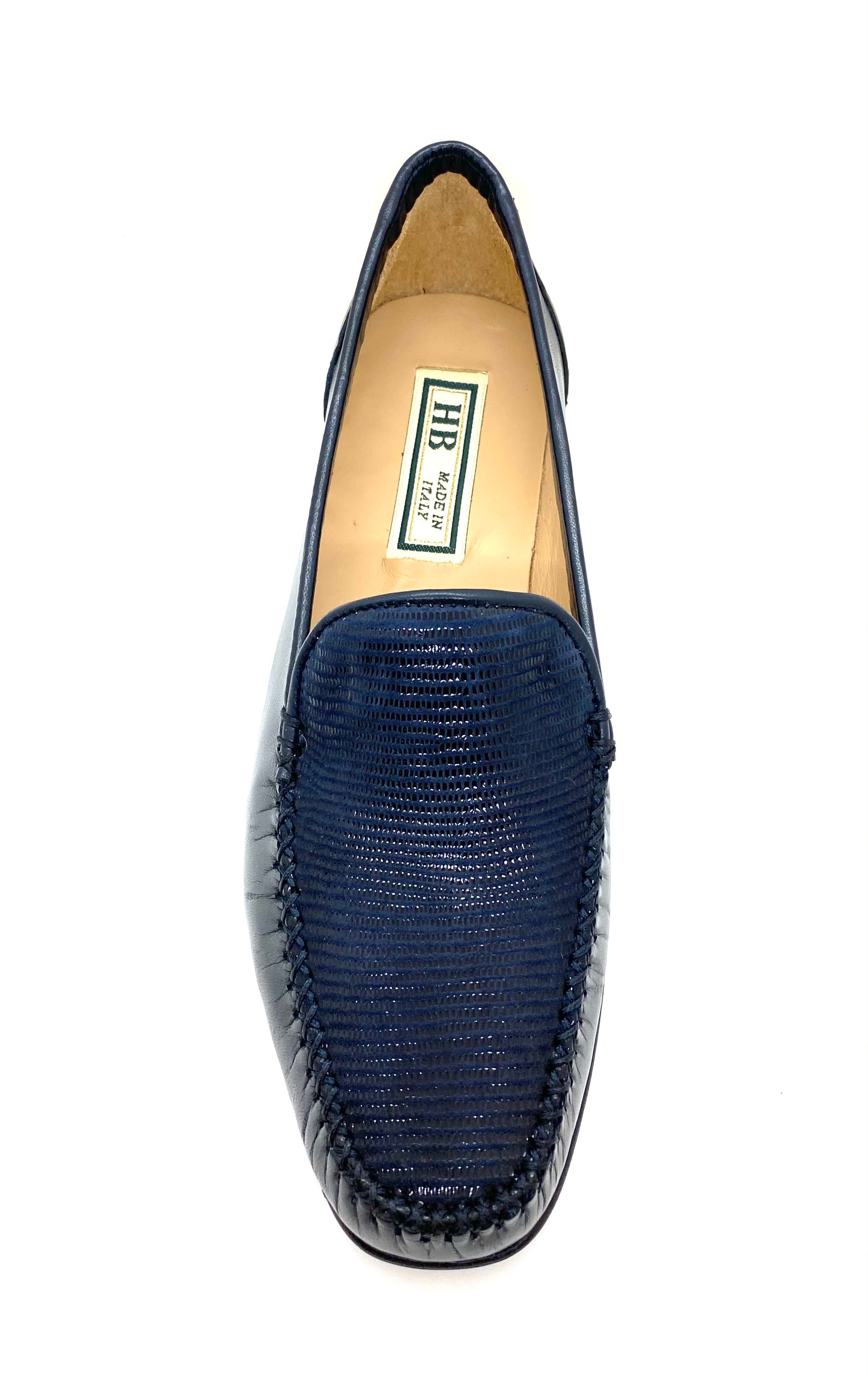 HB Shoes Madison is a classically designed Moccasin and a staple style for the brand, fom the HB Italia collection. Navy Leather and contrasting navy printed leather vamp. A perfect companion for your casual outfits.