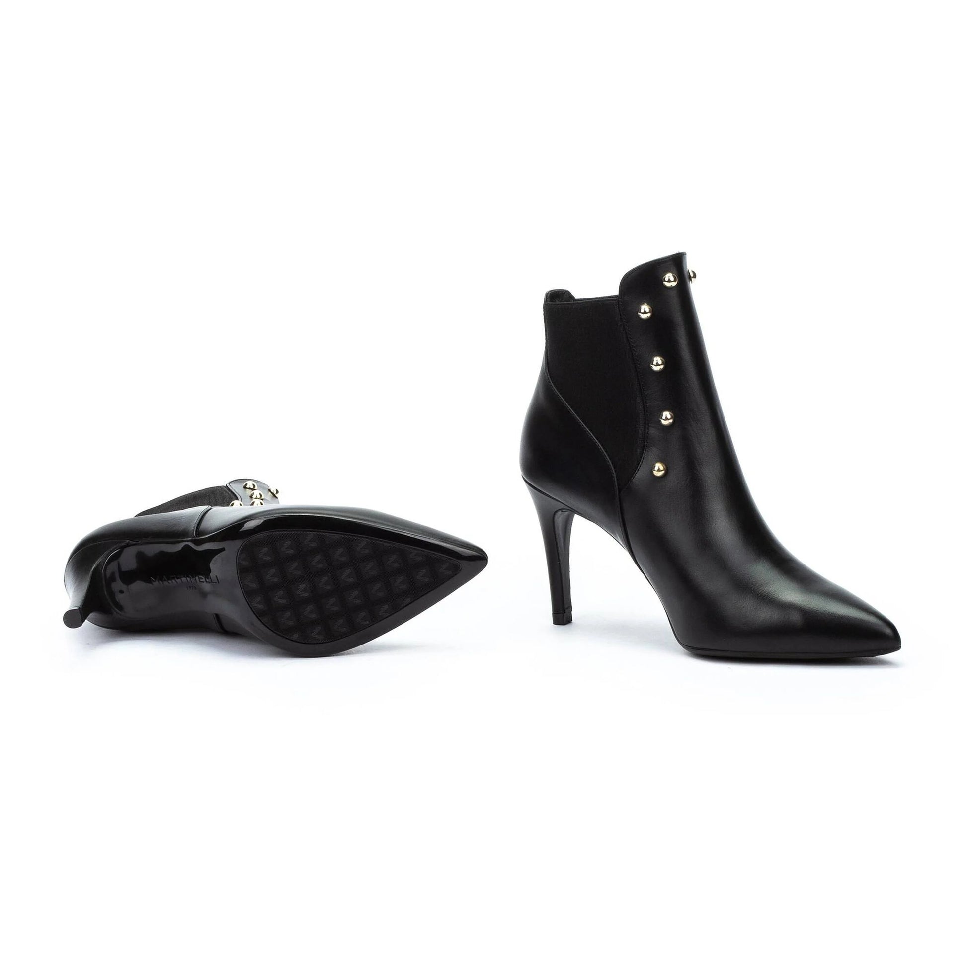 Thelma heeled ankle boots. Crafted in leather, featuring a 9 cm stiletto heel and pointed toe; adorned with studs. Elevate everyday with New Elegance, updated sophistication and comfort.