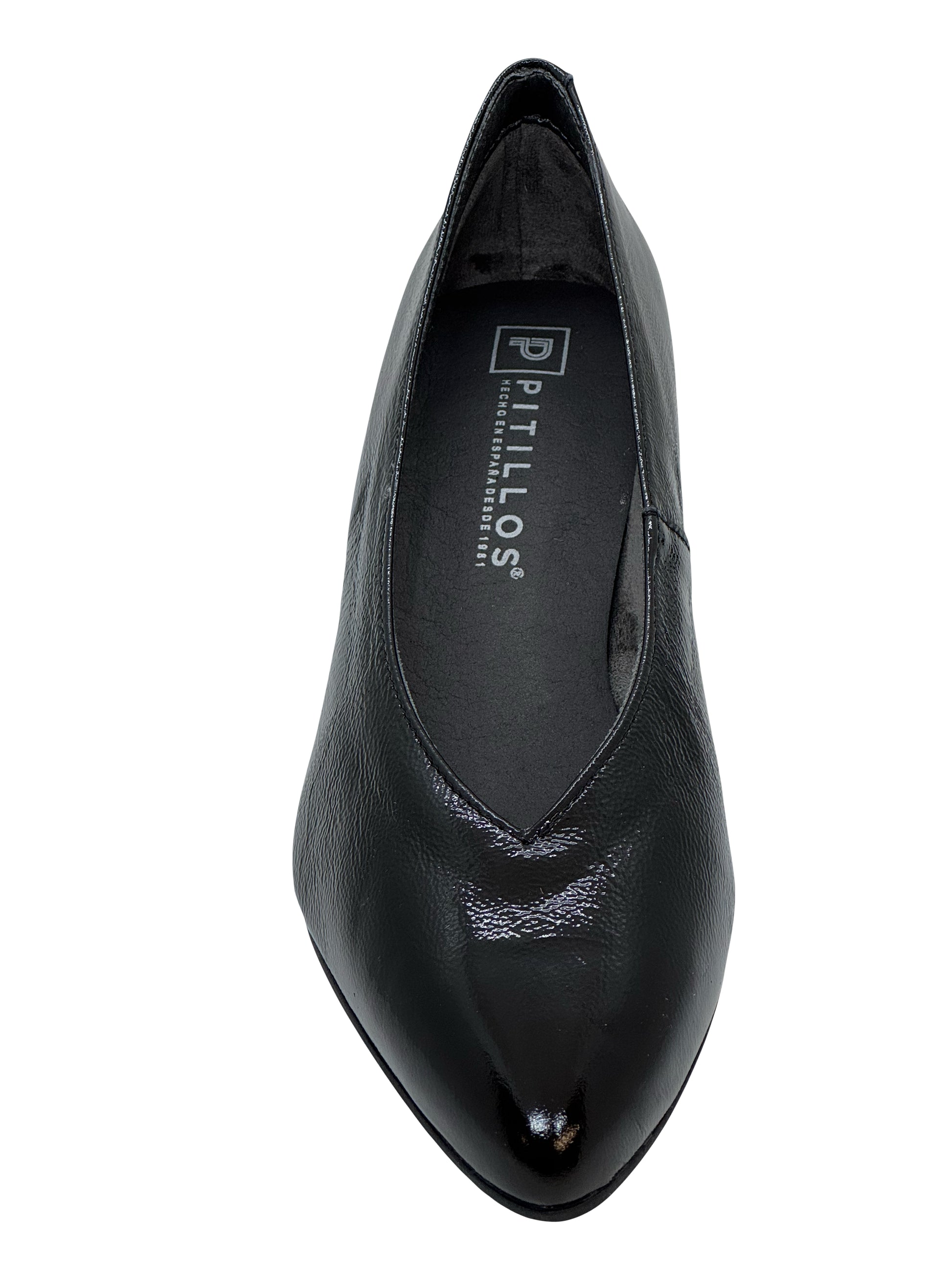 Pitillos Ladies Crinkle Patent Low Heel Court Shoe