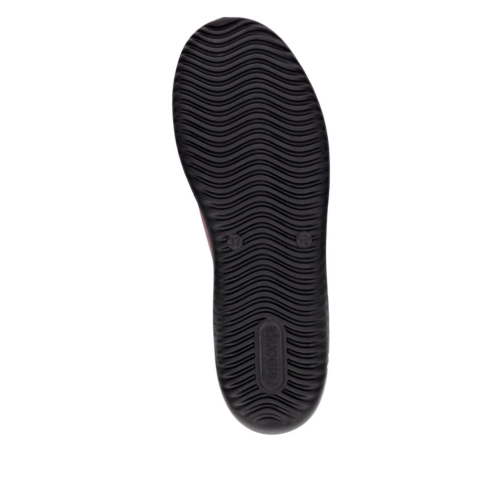Remonte ladies side zip and lace up casual shoe in wine. Featuring a leather upper and microfibre lining with a removable insole.