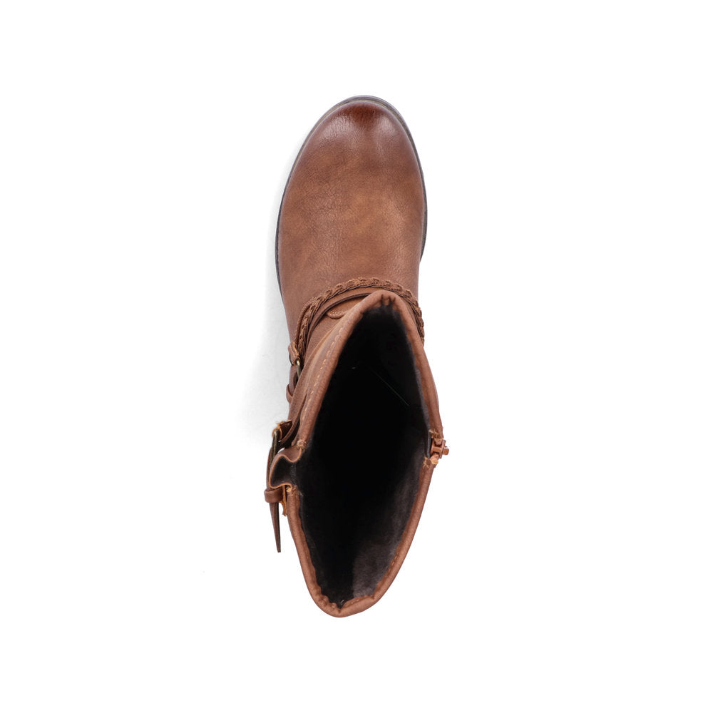 Rieker Ladies Mid Calf Length Low Heel Boot With Buckle Trim