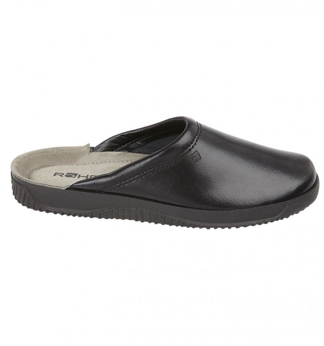 Men's slip on mule with cushioned footbed and injection molded sole unit. These house shoes by Rohde are comfortable enough to wear as a slipper, but sturdy enough to wear outdoors.