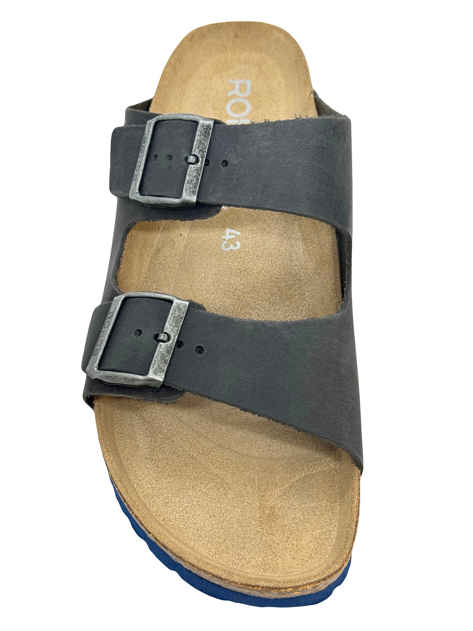 This ROHDE men's mule made of genuine leather is made with a non-slip, color-contrasting EVA sole and a deep, breathable footbed with a flexible cork-latex core. The two-strap boot offers a variable and optimal fit thanks to the two adjustable buckles. The waxed leather upper creates an individual, natural look.