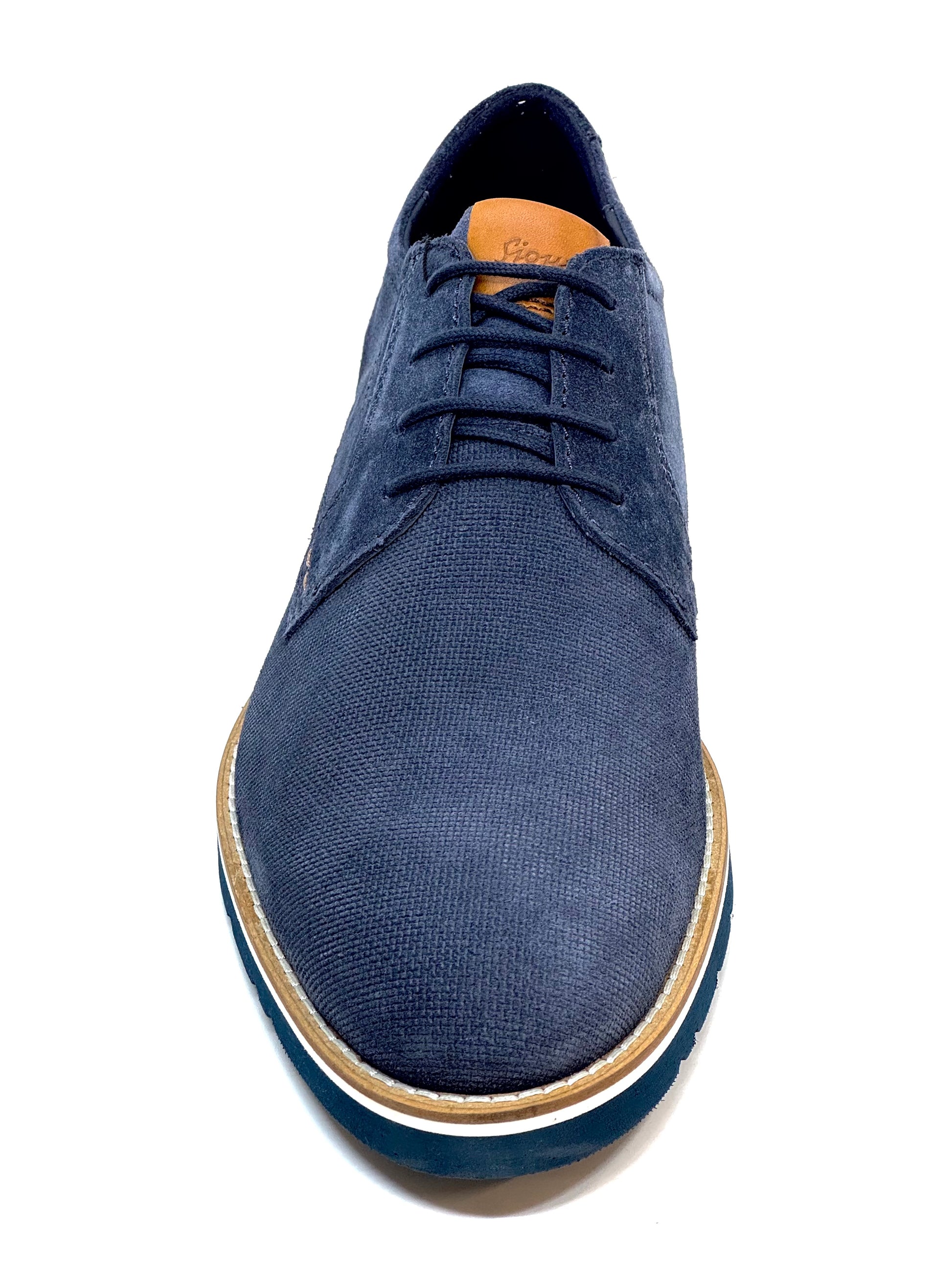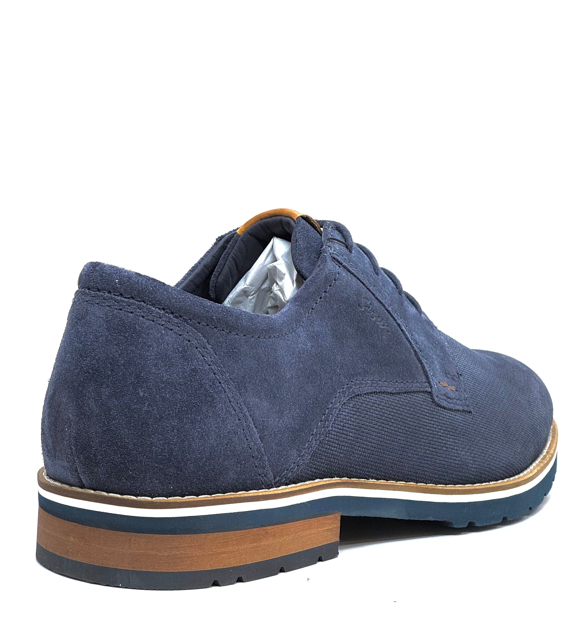 Men's on-trend lace-up shoe made from embossed calf suede with slight padding around the shoe collar. Lined with both leather and fabric, this model comes with a leather-covered footbed. The cleated lightweight rubber sole makes the shoe exceedingly comfortable to wear. Perfect for anyone who values comfort.