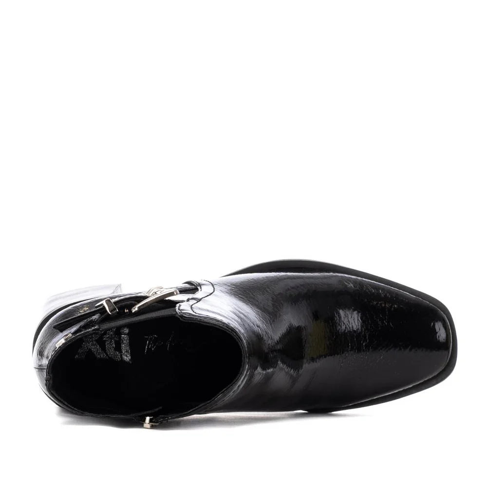 XTI Ladies Crinkle Patent Block Heel Ankle Boot